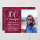 100 e Rosa vermelha maravilhosa Convite de aniversário de fotos Personalize esta convite de aniversário com o nome e a foto da pessoa que celebra um dia muito especial em sua vida. Um aniversário de 100 anos é um marco especial para celebrar. Marque a ocasião criando uma festa e enviando convites para todas as pessoas especiais em sua vida. Compre nossa loja de presentes que você pode personalizar com este mesmo design elegante em canecas de presente de aniversário, etiquetas de vinho e cartões de aniversário.