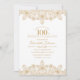 100th Convites dourados originais do laço da festa de aniversário. Personalizado a seus detalhes da celebração do aniversário: Idade, nome, data e tempo, característica do lugar etc. bonita um laço dourado do olhar e tipografia em um fundo branco. Você pode mudar a cor do fundo. Grandes convites elegantes do aniversário para aniversários criativos do país. Este 100th convite de aniversário é projetado por superdazzle.com