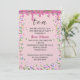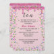 Pingindo gelo cor-de-rosa com aspersores doces coloridos para um convite à 10ª festa de aniversário. Todo texto é editável. A cor de fundo pode ser alterada.