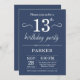 Convite de aniversário de 13 com fundo azul. Aniversário de criança. Convidar Menino ou Menina. 13 15 16º 18º 20 21rua 30 40º 50º 60º 80 de 70 100º, qualquer idade. Para mais personalização, clique no botão "Personalizar" e use nossa ferramenta de design para modificar este modelo.