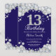 Convite de aniversário de 13. Diamante Azul marinho e Rinotraqueíte Prateada. Convidado Elegante Birthday Bash. Aniversário de criança. Aniversário da Garota. Aniversário. Para mais personalização, clique no botão "Personalizar" e use nossa ferramenta de design para modificar este modelo.
