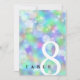 Adicione sofisticação à 14, 24º, 34º ou 43º aniversário de casamento opal com esta carta de mesa, que apresenta uma elegante carta e um confete hexagonal num fundo opal iridescente. Personalizar com o número da tabela. O reverso mostra design idêntico. Design © W.H. Sim. Mais informações em zazzle.com/expressionsoccasions