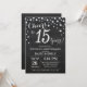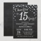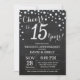 15º Aniversário de Casamento Convite Quadro Negro Preto e Prata. Décimo Quinto Aniversário de Casamento. Fundo de Diamante Brilhante Preto e Prata. Confetes Prateados. Aniversário de Adulto. Festa de Aniversário Feminino ou Masculino. Para personalização adicional, clique no botão "Personalizar" e use nossa ferramenta de design para modificar este modelo.