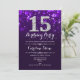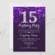 Convite de aniversário de 15. Elegante design branco roxo com prata brilhante. Aniversário adulto. Apresenta diamantes e fontes de script. Convidado para homens ou mulheres no dia. Perfeito para uma festa de aniversário na moda. Envie-me uma mensagem se precisar de mais personalização.