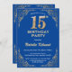 Convites 15 Birthday Blue e Dourado quadro Glitter