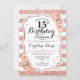 15 Aniversário Convite Elegante rosa de ouro e design branco com falso brilho. Listras brancas com rosas rosadas pincéis. Perfeito para uma festa de aniversário na moda. Pode ser personalizado em qualquer ano. Envie-me uma mensagem se precisar de mais alguma personalização.