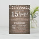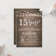 Rustic 15 Birthday Invitation Wood Background com Luzes De Cordas. 13 15 16º 18º 20 21rua 30 40º 50º 60º 80 de 70 100º, qualquer idade. Aniversário Adulto. Mulher ou Festa de aniversário masculina. Para mais personalização, clique no botão "Personalizar" e use nossa ferramenta de design para modificar este modelo.