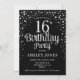 16º Convite de aniversário. Design elegante em prata brilhante e preto. Possui fonte de script na moda e confetti. Envie-me uma mensagem se precisar de idade personalizada.