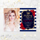 16º convite de aniversário com sua foto. Apresenta faixas brancas de marinho, fonte de script, rosa vermelha e confetti. Design branco azul-real clássico, vermelho, com ouro brilhante falso. Perfeito para uma elegante e doce celebração de 16 dias.