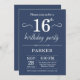 16º Convite de Aniversário com Fundo Azul.Aniversário de crianças. Convidam o Menino ou Menina Bday. 13 15 16º 18º 20 21 rua 30 40º 50º 80 de 60º 70 de 100º, qualquer idade. Para mais personalização, clique no botão "Personalizar" e use a ferramenta design para modificar este modelo.