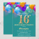 16.º Aniversário Teal e Dourados Balões Coloridos e Confetti Convite. Para mais personalização, clique no botão "Personalizar" e use nossa ferramenta de design para modificar este modelo.