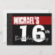 Este moderno design vermelho, branco e preto é uma maneira divertida de convidar as pessoas para uma celebração de 16 anos. Todo texto é totalmente personalizável. Você pode experimentar diferentes tipos de papel clicando na guia "Opções de convite" no canto superior direito. Eu recomendo o papel metálico calado que dá ao seu convite de aniversário um shimmer festivo e brilhar. Trendy!