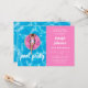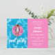 Convite de festas de Piscina de Verão, Rosquinha rosa-rosa, 16.º aniversário personalizado. Personalize-o com seus detalhes pessoais e o número de aniversário celebrado.
