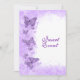 Borboletas lilás, machos e lavandas roxas elegantes com asas brilhantes são apoiadas por um fundo espiralado de na moda floral, que forma um quadro em torno de modelos de texto. IDEAL FOR - Festas de aniversario de meninas como 16º, 17º, 18º, 19º, 20, 21ruas, 25, 30, 35º, 40º, 45º, 50º, 60º ou 70; para as solteiras, os aniversários de "tema das borboletas" para as mulheres e as mulheres; para funções quinceanera; promove encontros formais corporativos e banquetes com um tema "roxo e branco" ou para empresas e empresas que albergam uma angariação de fundos para mulheres.