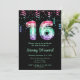 Este elegante e glamouroso convite de aniversário apresenta o número 16 em escalas de sereia com confete rosa, verde e roxo. O texto combina o script manuscrito e as fontes sans serif modernas para um aspecto elegante e sofisticado.