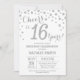 16.º Convite de Aniversário com o Fundo do Diamante Glitter Silver. Prata Confetti. Aniversário de crianças. Aniversário de Menina ou Menina de Adolescência. Para mais personalização, clique no botão "Personalizar" e use nossa ferramenta de design para modificar este modelo.
