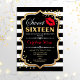 Doce 16 Convite de aniversário. Design branco preto elegante com ouro brilhante. Apresenta lábios vermelhos beijam, listras brancas pretas, confetti e fonte de script. Perfeito para na moda 16ª festa de aniversário. Envie-me uma mensagem se precisar de mais personalização.