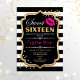 Doce 16 Convite de aniversário. Design branco preto elegante com ouro brilhante. Apresenta lábios cor-de-rosa beijando, listras brancas pretas, confetti e fonte de script. Perfeito para na moda 16ª festa de aniversário. Envie-me uma mensagem se precisar de mais personalização.