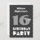 Este design contemporâneo com seu padrão de diamante preto e seu texto grande e ousado é uma maneira divertida de convidar as pessoas para a celebração de 16 anos de um adolescente. O texto a convite é totalmente personalizável - você pode experimentar diferentes tipos de papel clicando na guia "Opções de convite" no canto superior direito. Eu recomendo este design em um papel metálico calado em gelo que dá ao seu convite um shimmer e brilhar festivos.