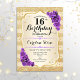 16.º Convite de Aniversário. Design elegante em ouro e roxo. Apresenta faixas de ouro com brilho sutil, fontes de script na moda de rosa de e confetti. Perfeito para uma festa de aniversário de vidro.