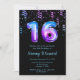 Este elegante e glamouroso convite de aniversário apresenta o número 16 em impressão de galáxia com confete roxo e azul. O texto combina o script manuscrito e as fontes sans serif modernas para um aspecto elegante e sofisticado.