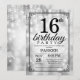 16º Convite de Aniversário com Luzes de Cordas de Prata com Fundo de Brilho de Prata. Aniversário de Prata.Aniversário de crianças. Convidam o Menino ou Menina Bday. 13 15 16º 18º 20 21 rua 30 40º 50º 80 de 60º 70 de 100º, qualquer idade.