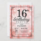 16º Convite de Aniversário com Luzes de Cadeia de Caracteres Rosa com Fundo de Brilho Rosa. Aniversário Rosa.Aniversário de crianças. Convidam o Menino ou Menina Bday. 13 15 16º 18º 20 21 rua 30 40º 50º 80 de 60º 70 de 100º, qualquer idade.