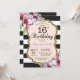 16.º Convite de Aniversário para Mulheres. Senhora Adolescente Aniversário. Convidar Festa de aniversário preto e Dourado. Dourada Glitter. Flor Floral De Aquarela Púrpura. Black and White Stripes. Digital Imprimível. Para mais personalização, clique no botão "Personalizar" e use nossa ferramenta de design para modificar este modelo.
