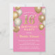16.º Aniversário, Rosa e Dourado Balões de Brilho Convite de Aniversário. Para mais personalização, clique no botão "Personalizar" e use nossa ferramenta de design para modificar este modelo.