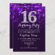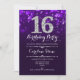 16.º Convite de Aniversário. Elegante design branco roxo com prata brilhante. Aniversário adulto. Apresenta diamantes e fontes de script. Convidado para homens ou mulheres no dia. Perfeito para uma festa de aniversário na moda. Envie-me uma mensagem se precisar de mais personalização.