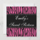 Zebra rosa Doce 16 Convites de aniversário. Um animal de zebra na moda cor-de-rosa e preto imprime um doce convite com dezesseis ilustrações em diamante. Personalize facilmente os detalhes de sua festa! convites de aniversário de zebra modernos, legal e engraçados.