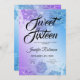 design de convite para o inverno elegante "Doce 16 ( Dezesseis ) Festa de aniversário com motif de flocos de neve com brilho lacrimogêneo e brilhante, e nome personalizado e texto detalhado. Fácil de usar e fácil de personalizar. Faça o pedido hoje!
