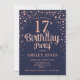 17º Convite de aniversário. Design elegante em azul marinho e ouro rosa brilhante. Possui fonte de script na moda e confetti. Envie-me uma mensagem se precisar de idade personalizada.