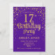 17º Convite de aniversário. Design elegante em roxo real e ouro brilhante. Possui fonte de script na moda e confetti. Envie-me uma mensagem se precisar de idade personalizada.