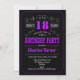 18º Convite de aniversário. Design preto elegante, branco roxo, com padrão de quadro e fonte de script. Saúde para 18 anos! Envie-me uma mensagem se precisar de mais personalização.