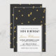 18ª Festa de aniversário | Trendy Dourada Polka Invtions. Rico, convites formais de aniversário impressos com dourado confetti em fundo preto. O texto tipográfico é colocado em branco para que possa ser lido mais facilmente; todo o texto é totalmente personalizável. Estes convites de aniversário clássicos são perfeitos para homens ou mulheres de qualquer idade que gostem de designs glamourosos, modernos e de moda.