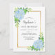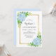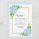 Esses 18º convites de festas de aniversários apresentam um design floral de cor d'água de flores azuis hydrangea, folhagem e borda falsa de ouro. Personalize-os com o seu próprio texto.