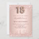 Um convite moderno, na moda e glamouroso para a 18ª festa de aniversário de uma menina. Um fundo metálico rosa dourado falso com um brilho elegante rosa dourado, pintura gota-a-gota. O nome é escrito com um moderno e escuro, rosa dourado, escrito com letra de estilo manuscrito. Personalize e adicione os detalhes da sua festa. O número 18 é escrito com uma fonte de estilo balão, script.