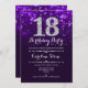 18º Convite de Aniversário. Elegante design branco roxo com prata brilhante. Aniversário adulto. Apresenta diamantes e fontes de script. Convidado para homens ou mulheres no dia. Perfeito para uma festa de aniversário na moda. Envie-me uma mensagem se precisar de mais personalização.