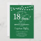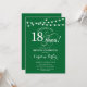 18º Convite de Aniversário. Emerald Forest verde e design branco com luzes de cordas de fadas e fontes de script. Saúde para 18 anos! Pode ser personalizado em qualquer idade! Envie-me uma mensagem se precisar de mais personalização.