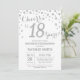 18º Convite de Aniversário com o Fundo de Diamante de Silver Glitter. Prata Confetti. Aniversário Adulto. Homens ou Mulheres Aniversário. Para mais personalização, clique no botão "Personalizar" e use a ferramenta design para modificar este modelo.