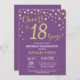 18.º Convite de Aniversário com Fundo de Diamante Roxo e Dourado. Dourado Confetti. Aniversário Adulto. Homens ou Mulheres Aniversário.