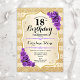 18º Convite de Aniversário. Design elegante em ouro e roxo. Apresenta faixas de ouro com brilho sutil, fontes de script na moda de rosa de de roxo e confetti. Perfeito para uma festa de aniversário de vidro.