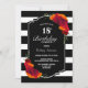 Convite de festas de janto de aniversário de 18 anos, em branco e preto, com elegantes monitores florais vermelhos e laranja. O texto é totalmente personalizável para permitir que você inclua todas as suas próprias informações para a celebração de aniversário.