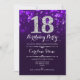 18º Convite de Aniversário. Elegante design branco roxo com prata brilhante. Aniversário adulto. Apresenta diamantes e fontes de script. Convidado para homens ou mulheres no dia. Perfeito para uma festa de aniversário na moda. Envie-me uma mensagem se precisar de mais personalização.