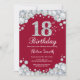 Convites 18. Aniversário Burgundy Red e Silver Diamond