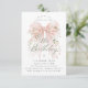 A large blush pink coquette bow is decorated with elegant pink roses on this birthday invitation. Classic script calligraphy lets your guests know it's a milestone birthday. Easy to personalize with your party details.