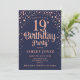 19º Convite de aniversário. Design elegante em azul marinho e ouro rosa brilhante. Possui fonte de script na moda e confetti. Envie-me uma mensagem se precisar de idade personalizada.