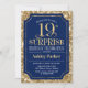 Surpresa 19º Convite à Celebração de Aniversário. Design elegante em azul marinho e padrão de ouro brilhante. Apresenta uma fonte elegante de script. Envie-me uma mensagem se precisar de mais personalização.