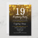 19º Convite de Aniversário. QUALQUER design preto Elegante, preto, branco, com luzes falsas brilhando no poste de ouro. Aniversário adulto. Apresenta diamantes e fontes de script. Homens ou mulheres convidam no dia. Perfeito para uma festa de aniversário na moda. Envie-me uma mensagem se precisar de mais personalização.